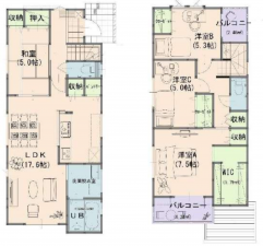 - 側溝、システムキッチン、カウンターキッチン、食器洗浄乾燥機、洗浄便座、浴室乾燥機、追い焚き、複層ガラス、ウォークインクローゼット、モニタ付インターホン、駐車場2台分、トイレ2箇所、パントリー