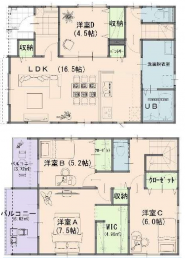 - 側溝、システムキッチン、カウンターキッチン、食器洗浄乾燥機、複層ガラス、ルーフバルコニー、ウォークインクローゼット、駐車場3台分、トイレ2箇所、パントリー