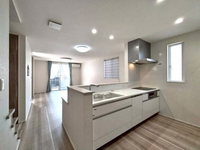 - 側溝、システムキッチン、カウンターキッチン、食器洗浄乾燥機、IHクッキングヒーター、オール電化、シャンプードレッサー、洗浄便座、浴室乾燥機、追い焚き、ウォークインクローゼット、モニタ付インターホン、エコキュート、トイレ2箇所、駐車場3~4台可能