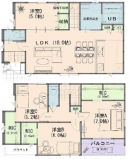 - 側溝、システムキッチン、カウンターキッチン、食器洗浄乾燥機、複層ガラス、ルーフバルコニー、ウォークインクローゼット、駐車場3台分、トイレ2箇所、パントリー