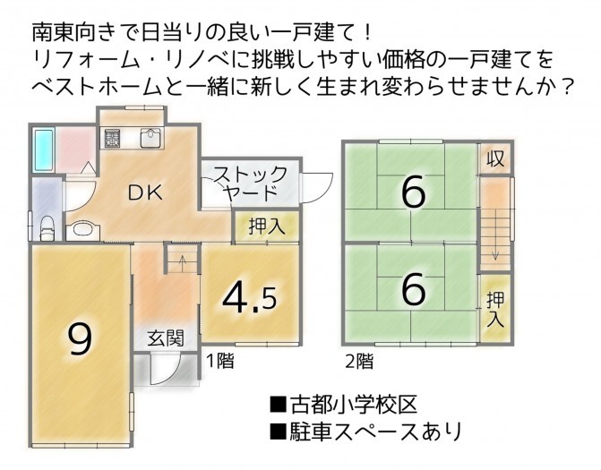 詳しくは詳細ページをご覧ください。写真充実 南向き 駐車場2台可 リノベ向き更新日:2025.11.14