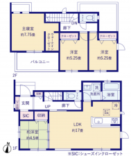- システムキッチン、カウンターキッチン、シャンプードレッサー、洗浄便座、浴室乾燥機、複層ガラス、ウォークインクローゼット、モニタ付インターホン、駐車場3台分、床下収納、トイレ2箇所、シューズインクローゼット