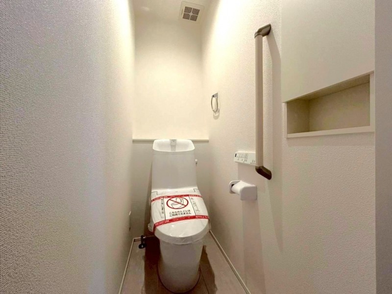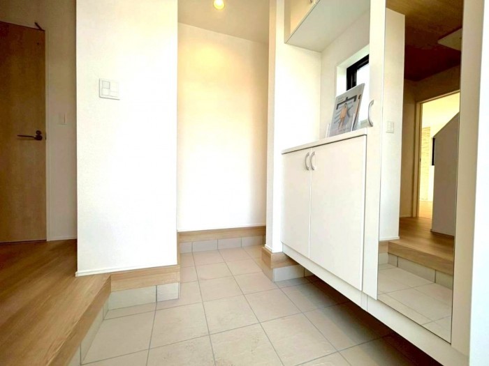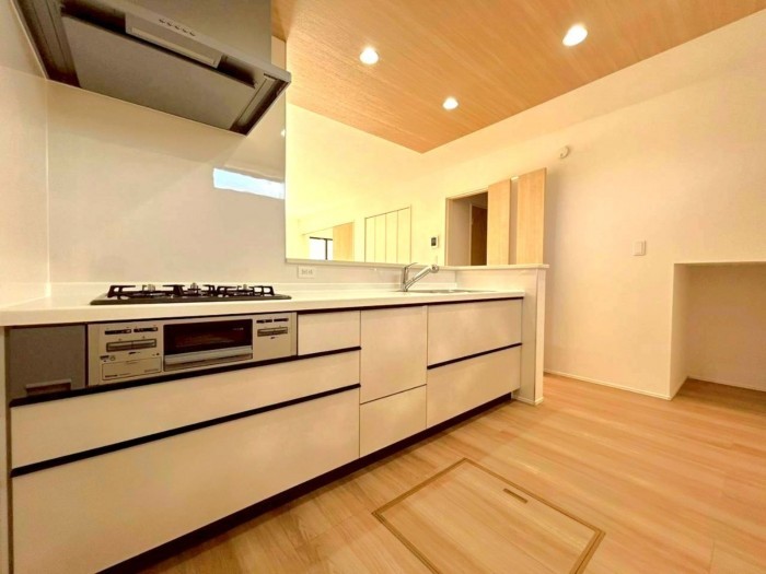 - システムキッチン、カウンターキッチン、シャンプードレッサー、洗浄便座、浴室乾燥機、複層ガラス、ウォークインクローゼット、モニタ付インターホン、駐車場2台分、床下収納、トイレ2箇所、パントリー、シューズインクローゼット