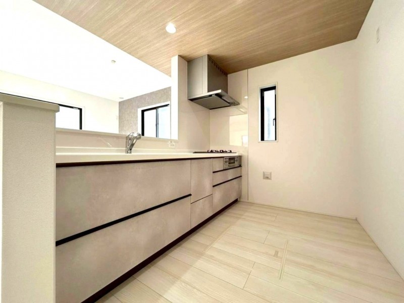 - システムキッチン、カウンターキッチン、シャンプードレッサー、洗浄便座、浴室乾燥機、複層ガラス、ウォークインクローゼット、モニタ付インターホン、駐車場2台分、床下収納、トイレ2箇所、パントリー、シューズインクローゼット