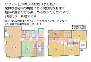 - 日当たり良好、閑静な住宅街、リフォーム済