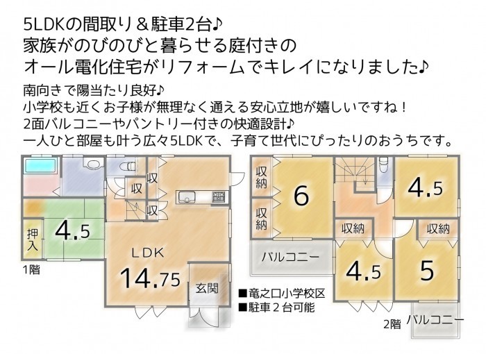 一人ひと部屋も叶う広々5LDKで、子育て世代にぴったりのおうちです。