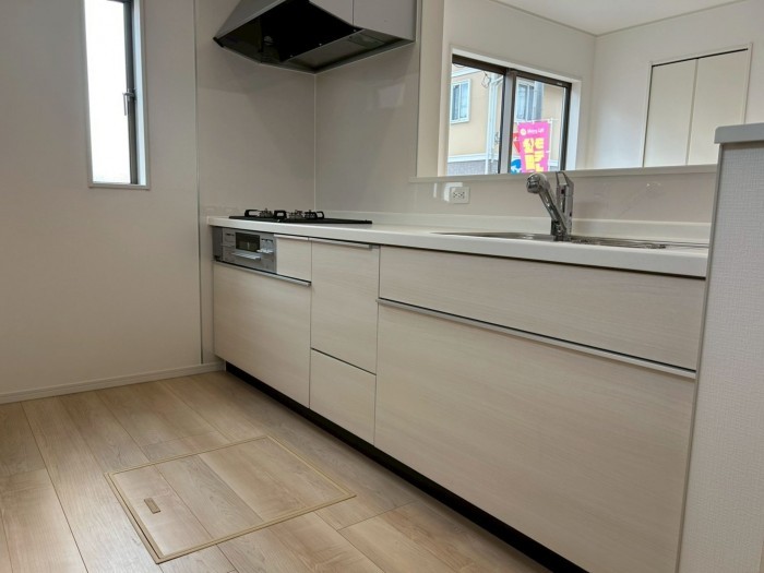 - システムキッチン、カウンターキッチン、シャンプードレッサー、洗浄便座、浴室乾燥機、複層ガラス、ルーフバルコニー、モニタ付インターホン、床下収納、トイレ2箇所、駐車4台可能
