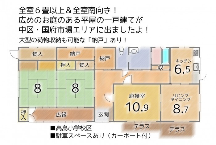 全室6畳以上&全室南向き!