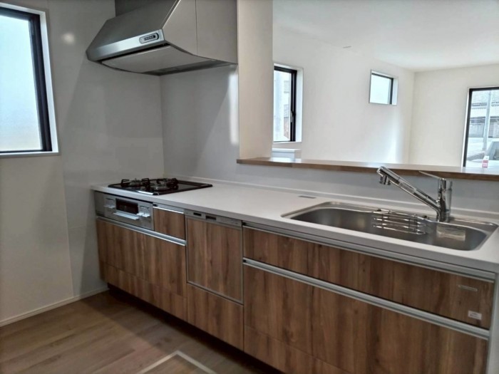 - 側溝、システムキッチン、カウンターキッチン、ウォークインクローゼット、駐車場2台分、パントリー