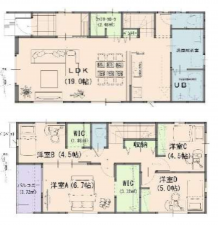- 側溝、ウォークインクローゼット、駐車場3台分、シューズインクローゼット