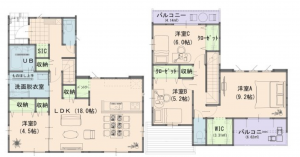 - システムキッチン、カウンターキッチン、食器洗浄乾燥機、洗浄便座、浴室乾燥機、追い焚き、ルーフバルコニー、ウォークインクローゼット、モニタ付インターホン、駐車場2台分、トイレ2箇所、パントリー