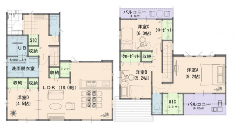 2面バルコニーで家全体の空気循環は良好♪