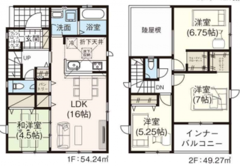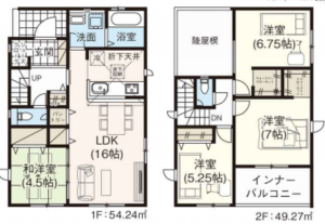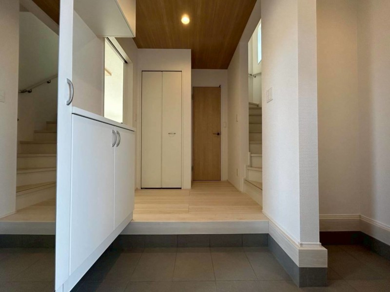 - システムキッチン、シャンプードレッサー、洗浄便座、浴室乾燥機、複層ガラス、ウォークインクローゼット、駐車場2台分、床下収納、トイレ2箇所、シューズインクローゼット、