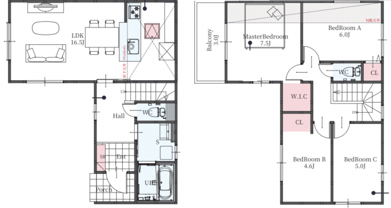 - システムキッチン、カウンターキッチン、ウォークインクローゼット、駐車場2台分、床下収納、トイレ2箇所