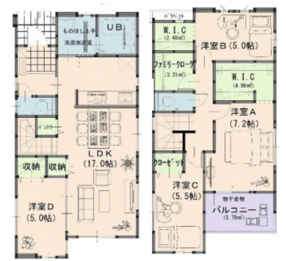 - 側溝、システムキッチン、カウンターキッチン、洗浄便座、ウォークインクローゼット、駐車場2台分、トイレ2箇所