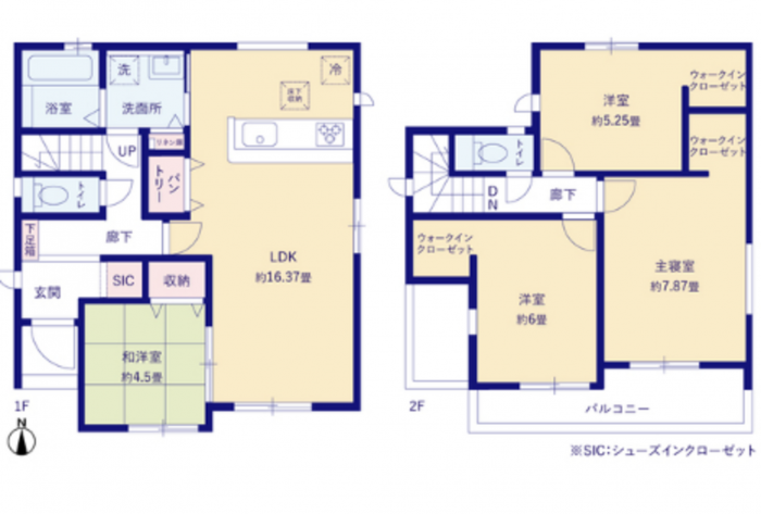 - システムキッチン、カウンターキッチン、シャンプードレッサー、洗浄便座、浴室乾燥機、複層ガラス、ウォークインクローゼット、駐車場2台分、床下収納、パントリー