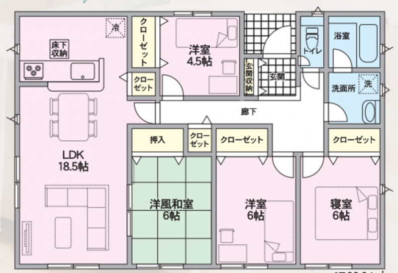 - システムキッチン、カウンターキッチン、オール電化、シャンプードレッサー、洗浄便座、浴室乾燥機、複層ガラス、モニタ付インターホン、床下収納、駐車4台可能