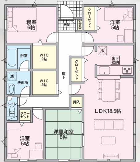 - システムキッチン、カウンターキッチン、オール電化、シャンプードレッサー、洗浄便座、浴室乾燥機、複層ガラス、モニタ付インターホン、床下収納、駐車4台可能