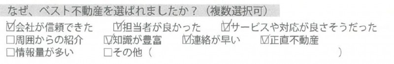 物件見学後に即決したため、すごいスピード感で様々なことが進み混乱することもありましたが、その都度村田さんに相談させていただき、すぐに不安や疑問を解消できました。